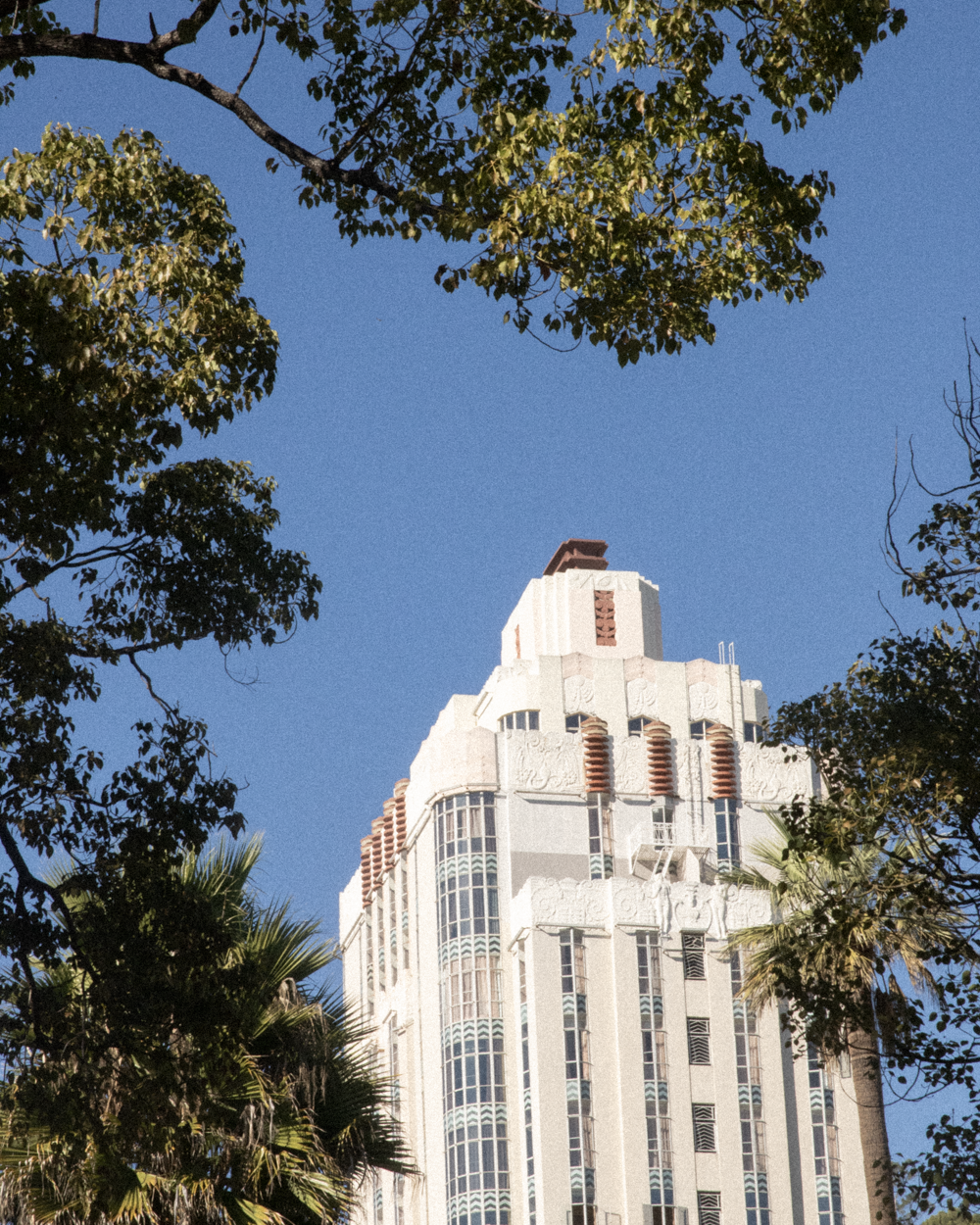 - Large steel-framed windows.
